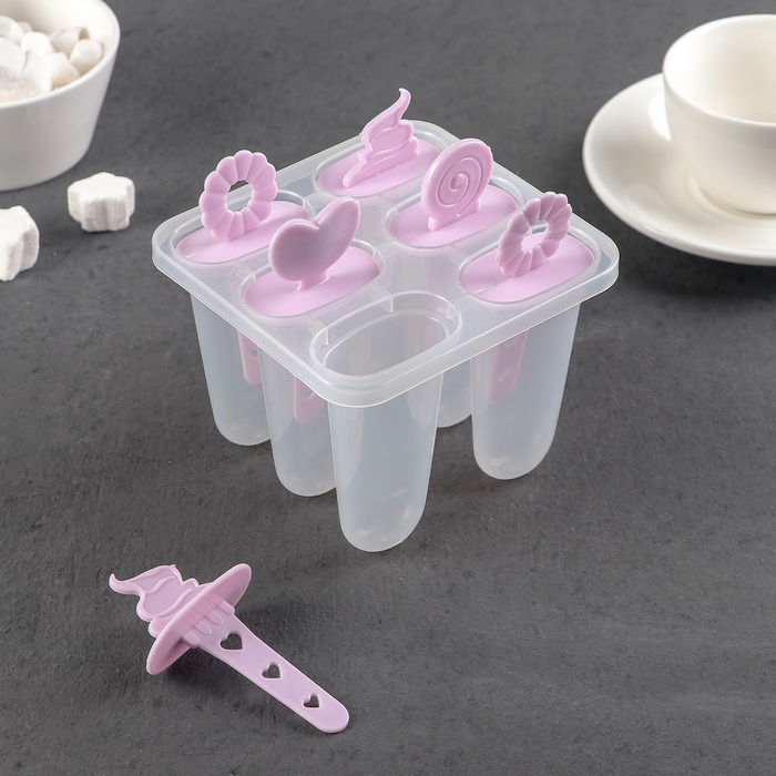 Форма для мороженого «Венеция», силикон, 19.6×11×2.4 см, 4 ячейки, розовая 7 фото
