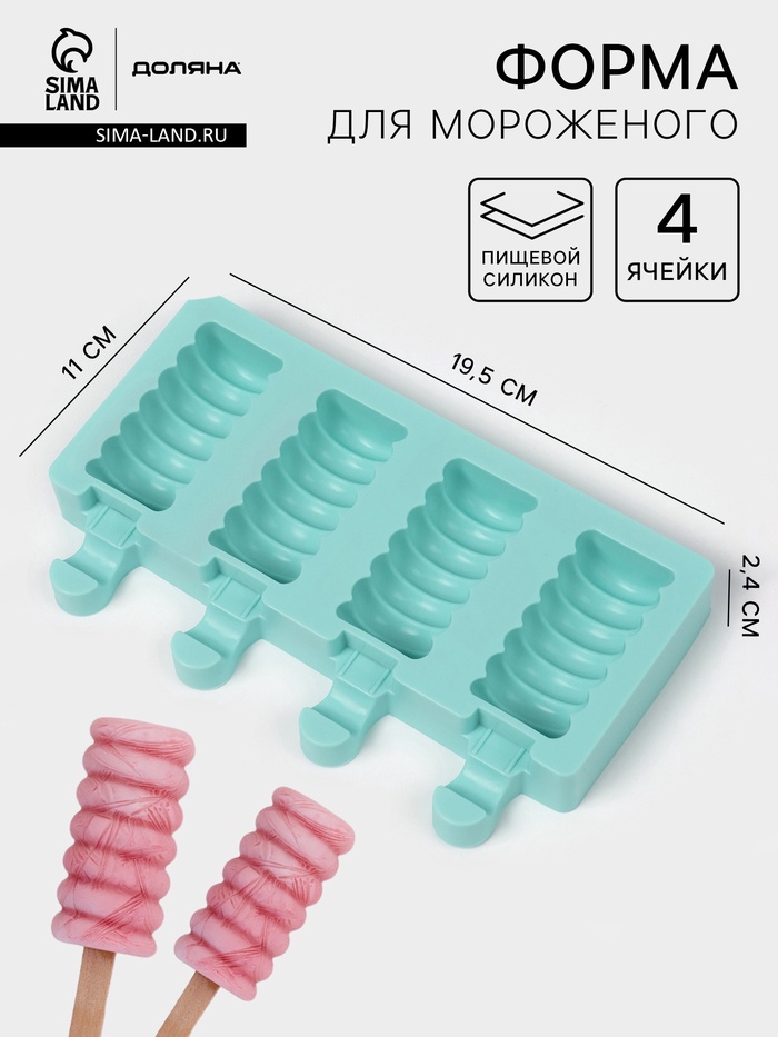 Форма для мороженого Доляна «Моника», силикон, 19.5×11 см, 4 ячейки (6.7×3.2 см), МИКС 10 фото