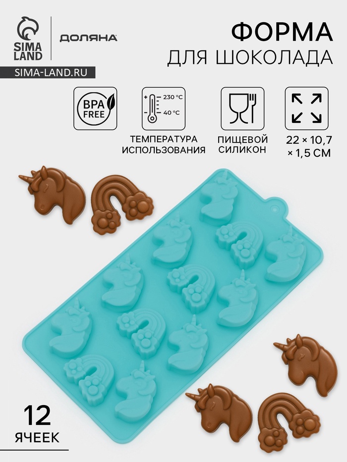 Форма для шоколада Доляна «Кролики», силикон, 23×15×2 см, 12 ячеек, сиреневая 7 фото