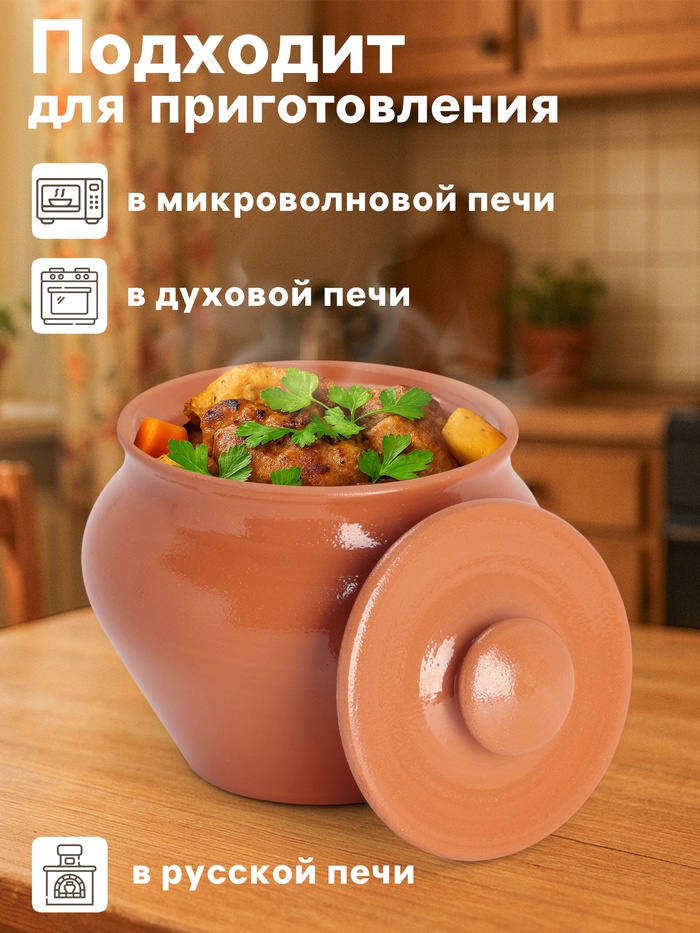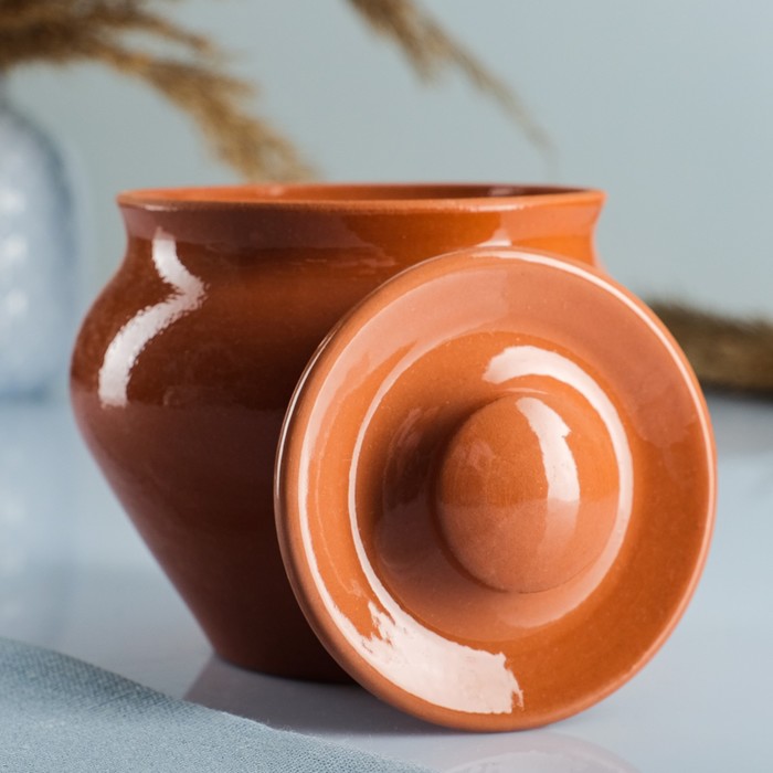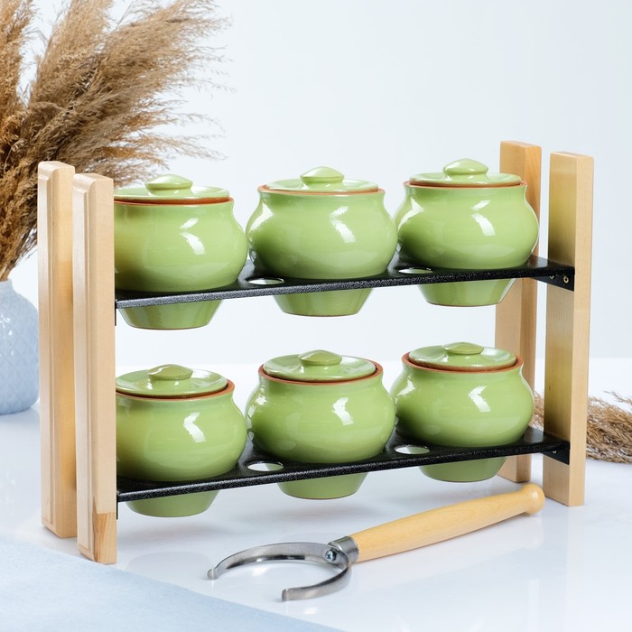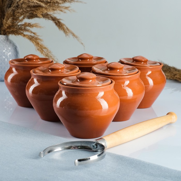 Горшочки для запекания Вятская керамика, набор 5 шт. с ухватом, 500 мл, оранжевые 4 фото