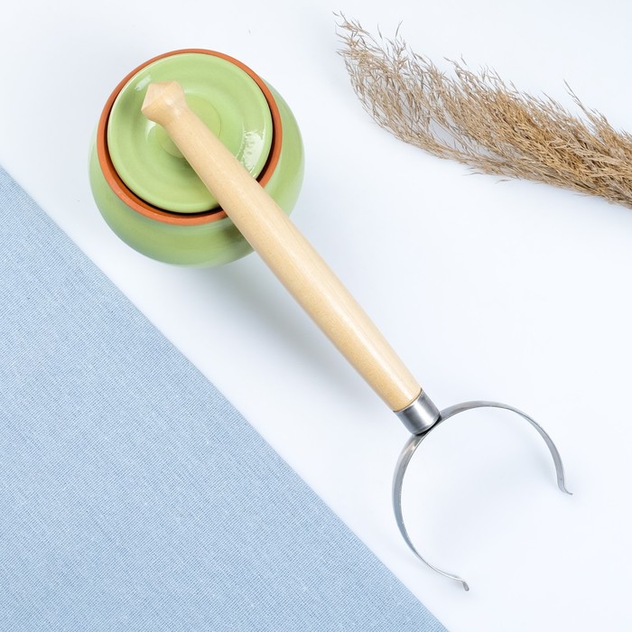 Горшочки для запекания Вятская керамика «Роса», набор 3 шт. 700 мл, ухват, голубые 6 фото