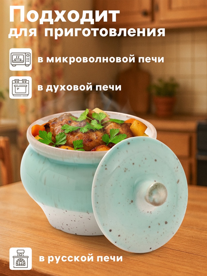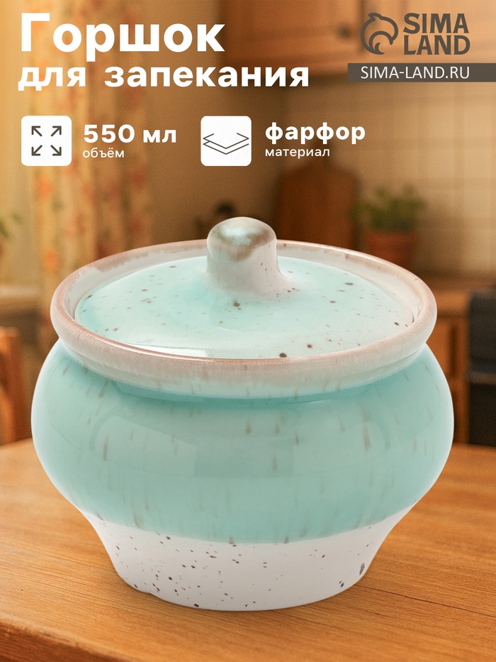 Горшок для запекания Хорекс NORDIC, 550 мл, фарфор, бирюзовый 6 фото