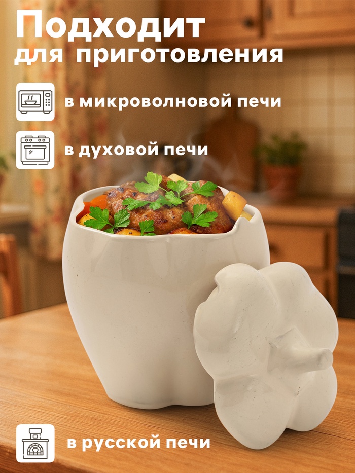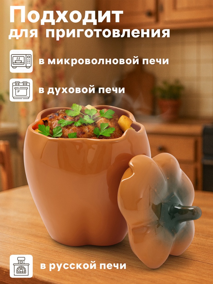 Горшок для запекания Борисовская керамика «Перец», 800 мл, бежевый 6 фото