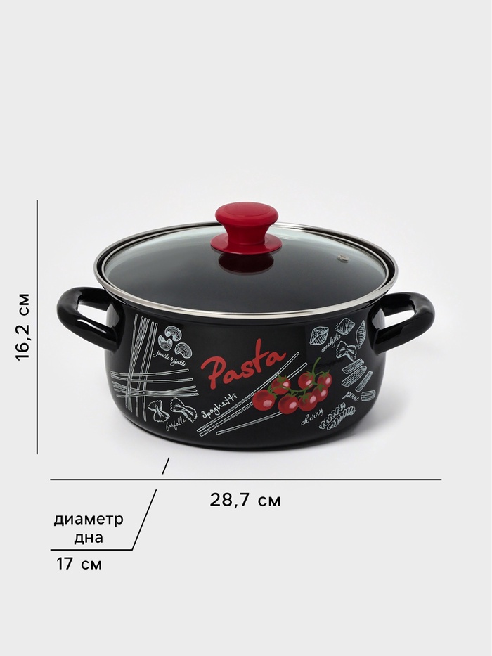 Кастрюля эмалированная «Болоньезе», 4 л, d=26.2 см, чёрная 6 фото
