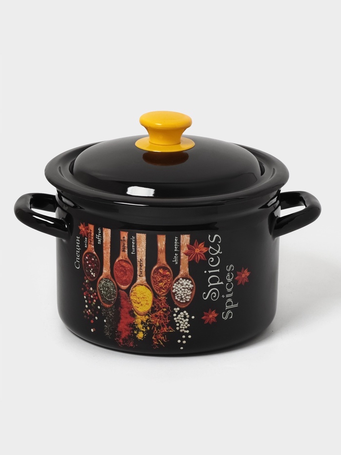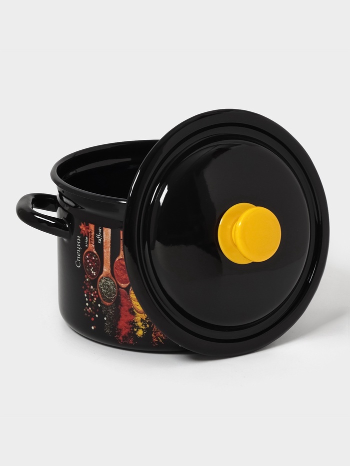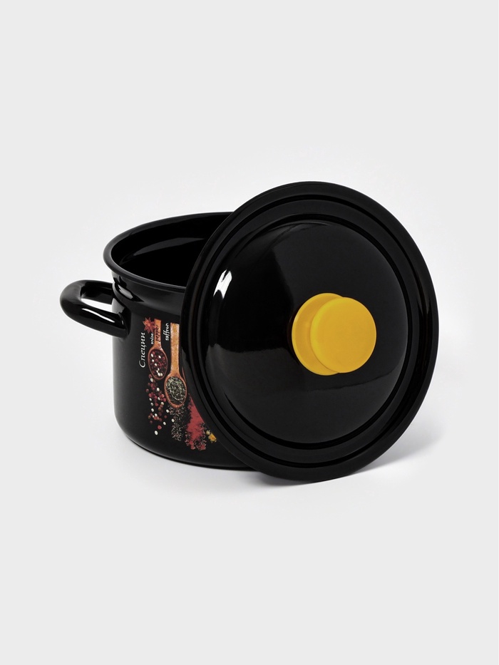 Кастрюля эмалированная «Карри», 4 л, d=21.3 см, с крышкой, цилиндрическая, чёрная 6 фото