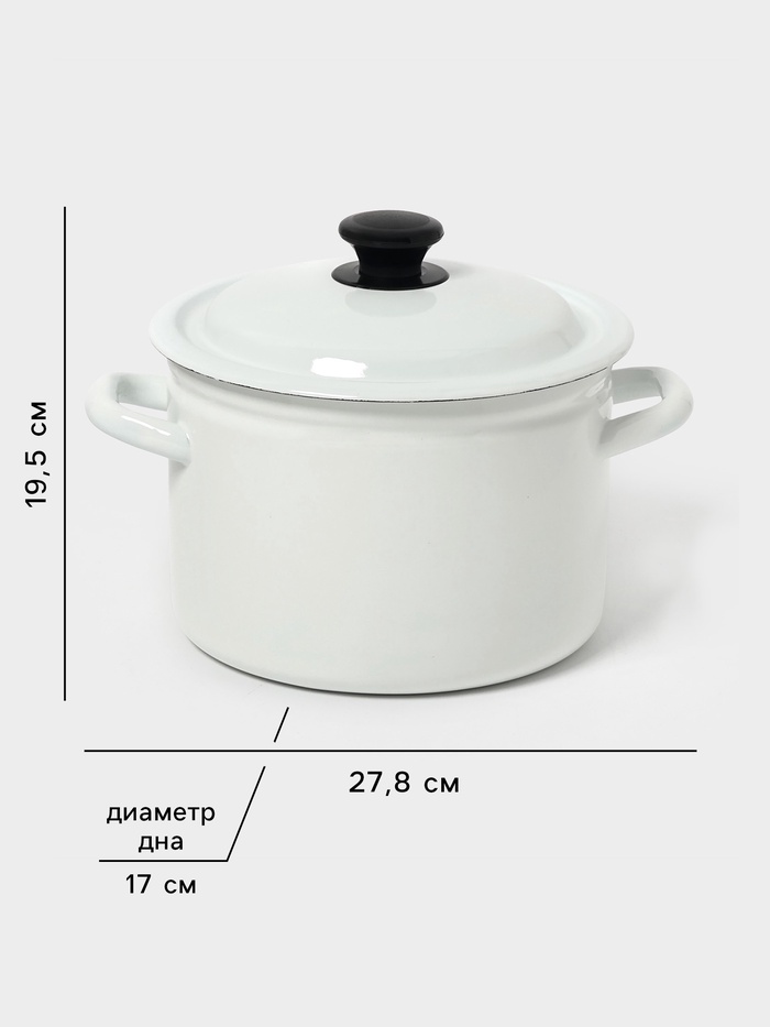 Кастрюля эмалированная, 4 л, d=21.3 см, с крышкой, цилиндрическая, без декора, белая 6 фото