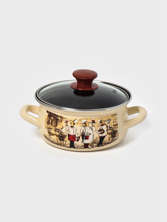 Кастрюля эмалированная, 2 л, d=17 см, с крышкой, цилиндрическая, цвет слоновой кости 6 фото