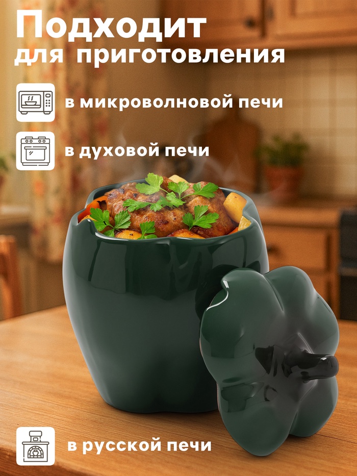 Горшок для запекания Борисовская керамика «Перец», 800 мл, зелёный 6 фото