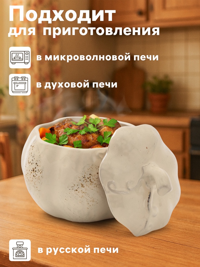 Горшок для запекания Борисовская керамика «Тыква», 750 мл, бежевый 6 фото