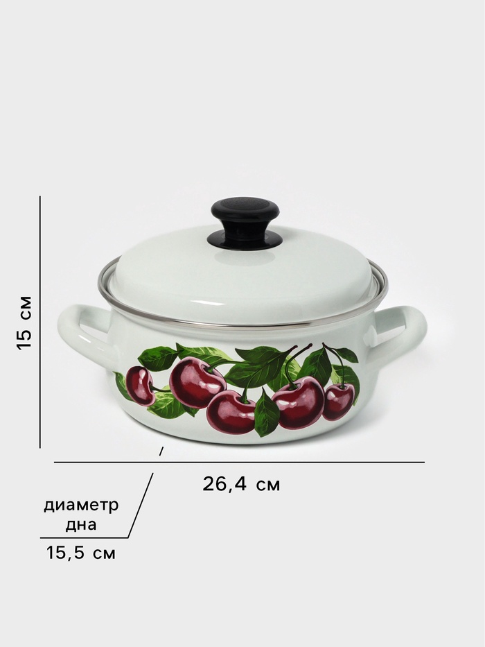 Кастрюля эмалированная, 4 л, d=26 см, с крышкой, белая 6 фото