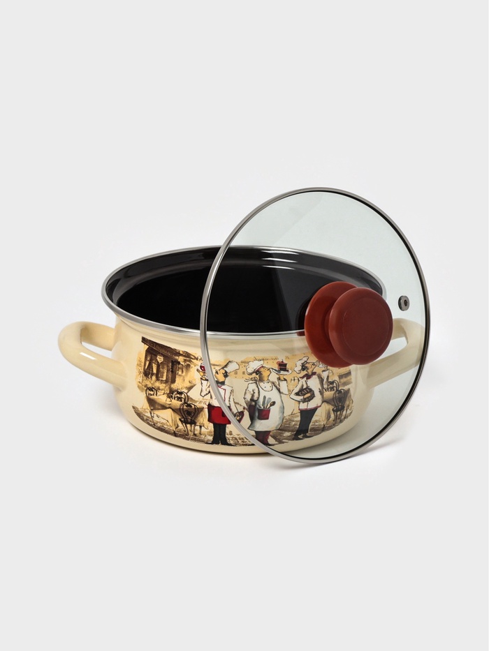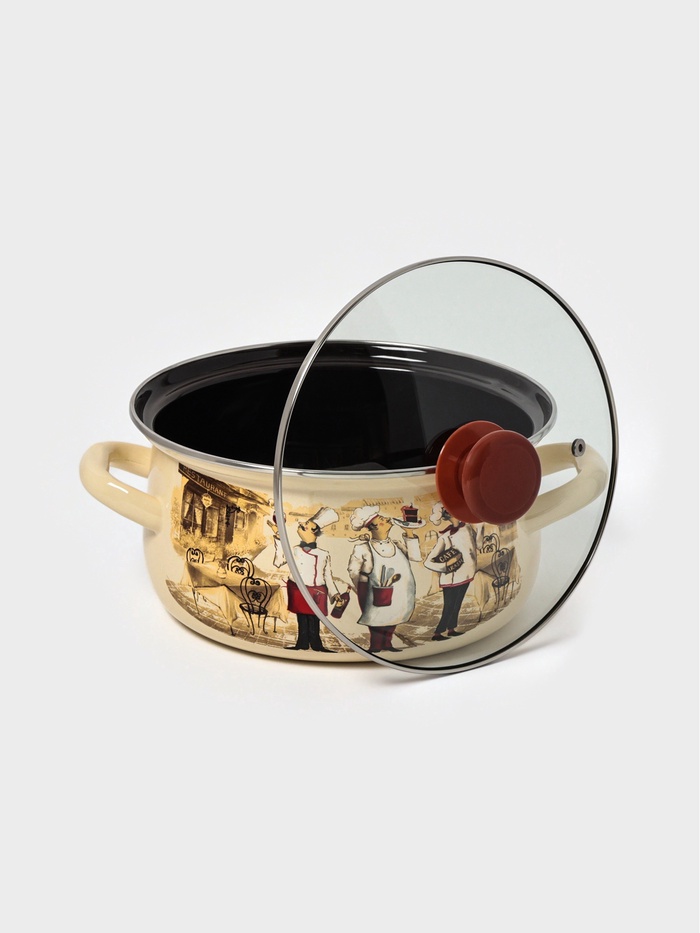 Кастрюля эмалированная «Сомелье», 4 л, d=26.2 см, цвет слоновой кости 7 фото