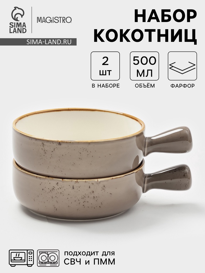 Кокотницы Magistro «Церера», набор 2 шт., 500 мл, d=15.2 см, фарфор, коричневые 8 фото