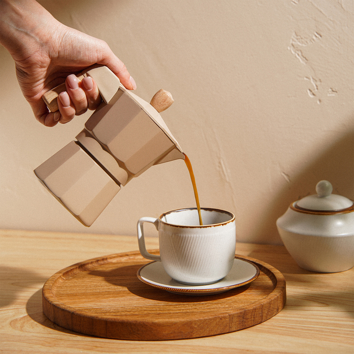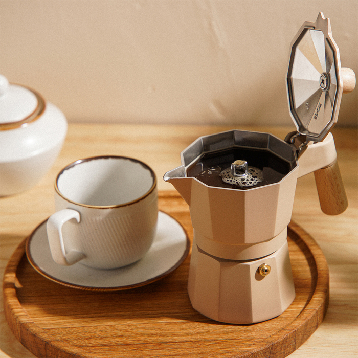 Турка Доляна «Мрамор грэй», 450 мл, d=9 см, 20×9×14 см, пластиковая ручка, антипригарное покрытие, индукция, серая 6 фото