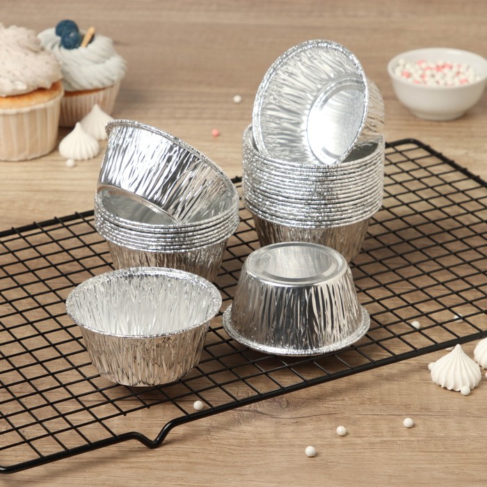 Набор форм для выпечки из фольги Доляна, 160 мл, 8×3.5 см, 50 шт. 4 фото