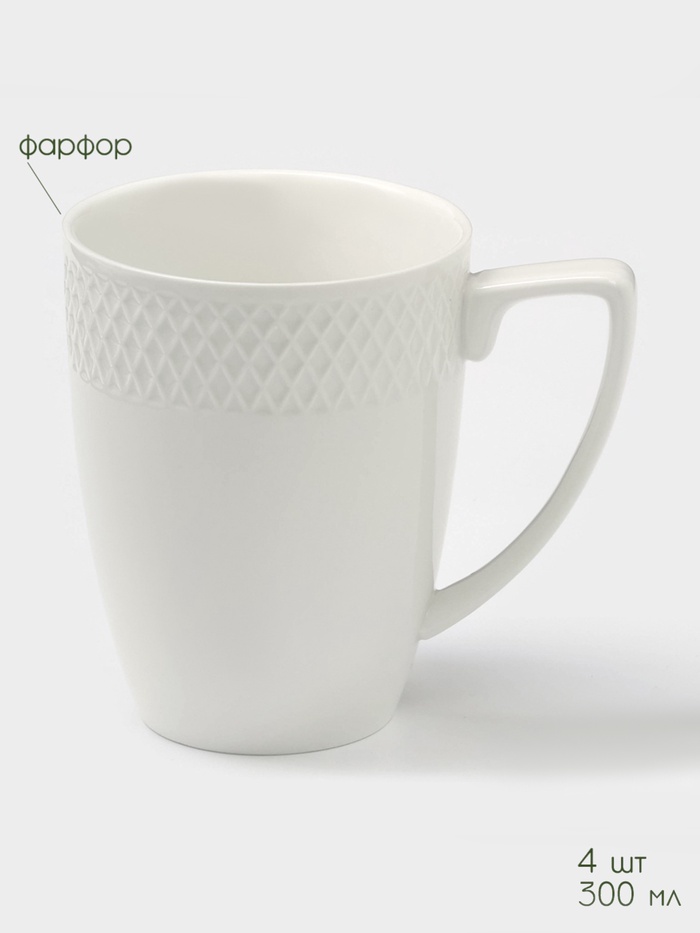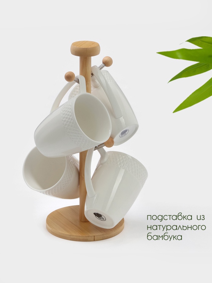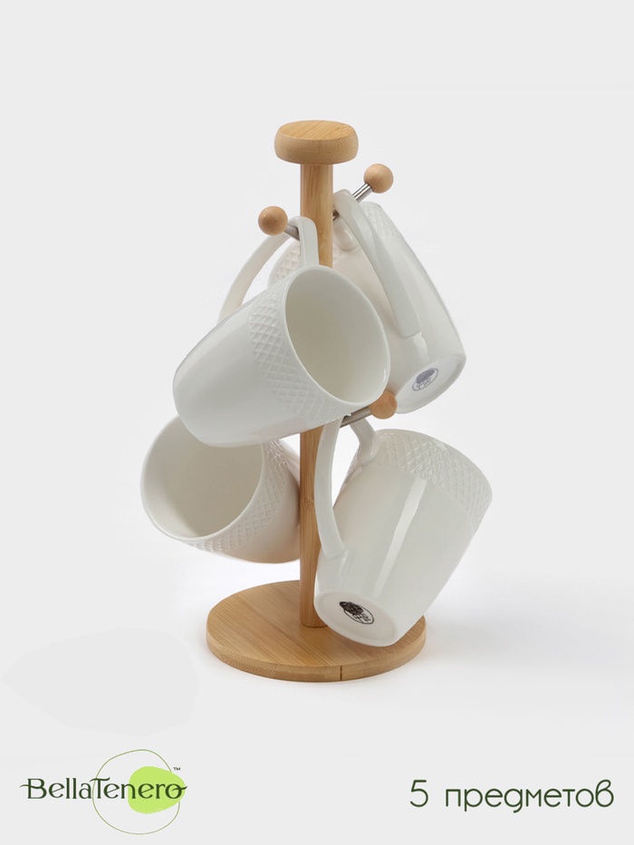 Набор кружек BellaTenero, 300 мл, 4 шт., на бамбуковой подставке, фарфор, белый