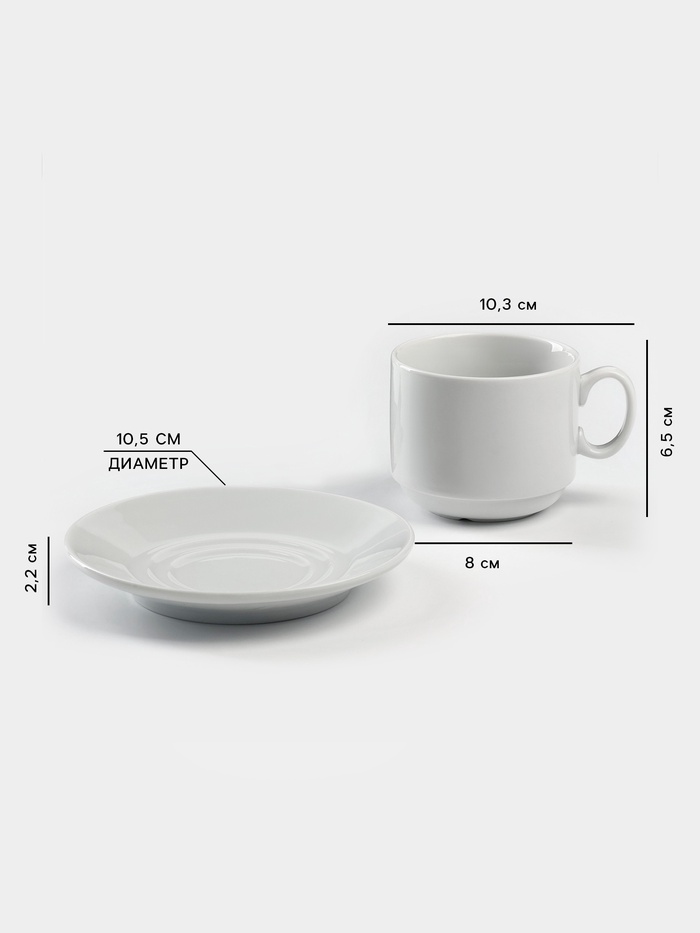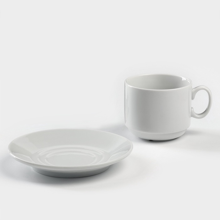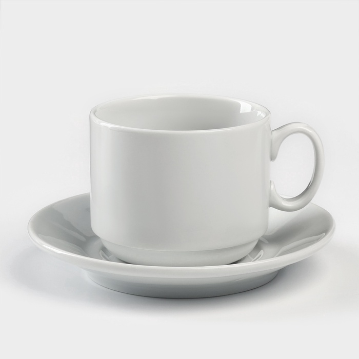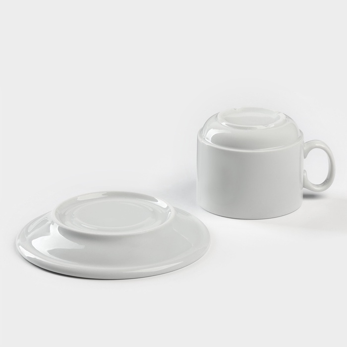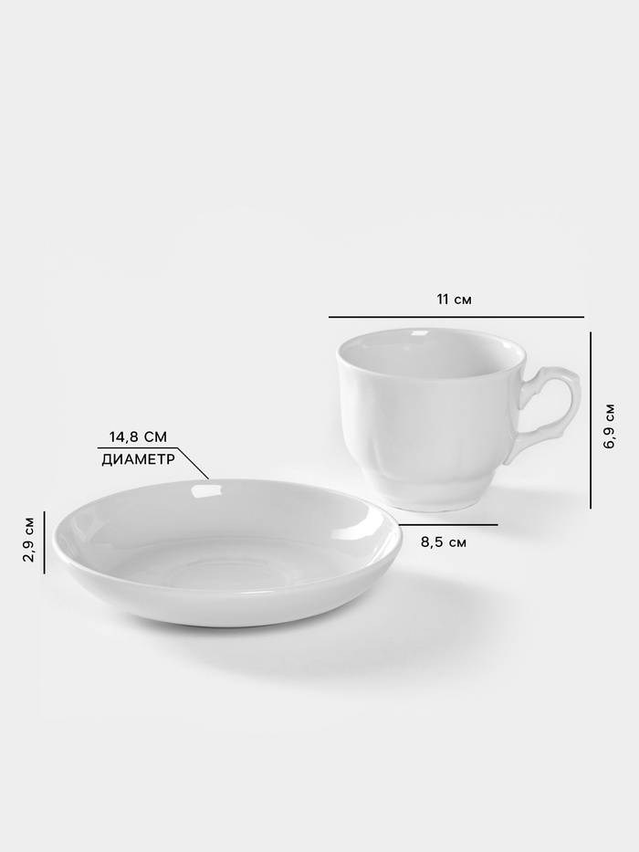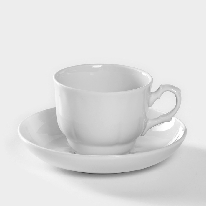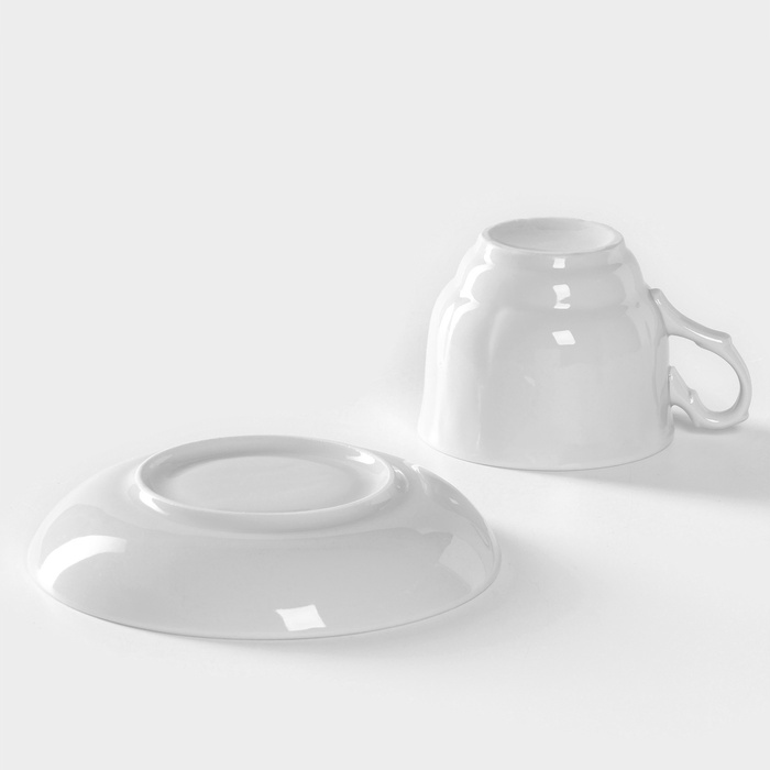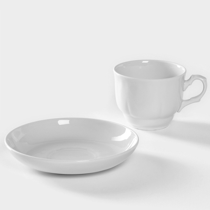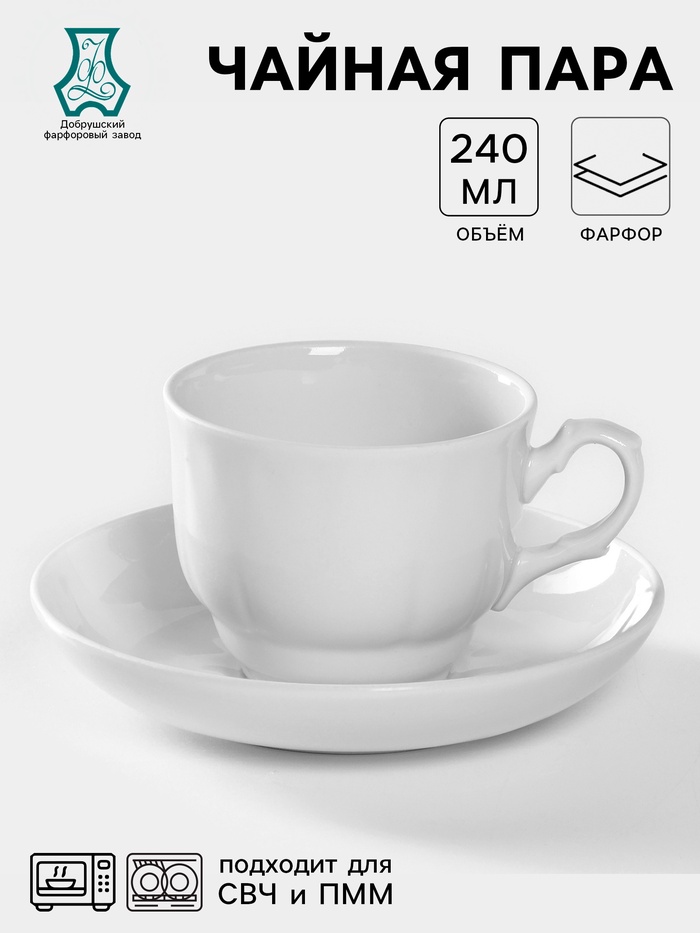 Чайная пара Добрушский завод «Бельё», 2 предмета: чашка 240 мл, блюдце d=14.8 см, фарфор, белая