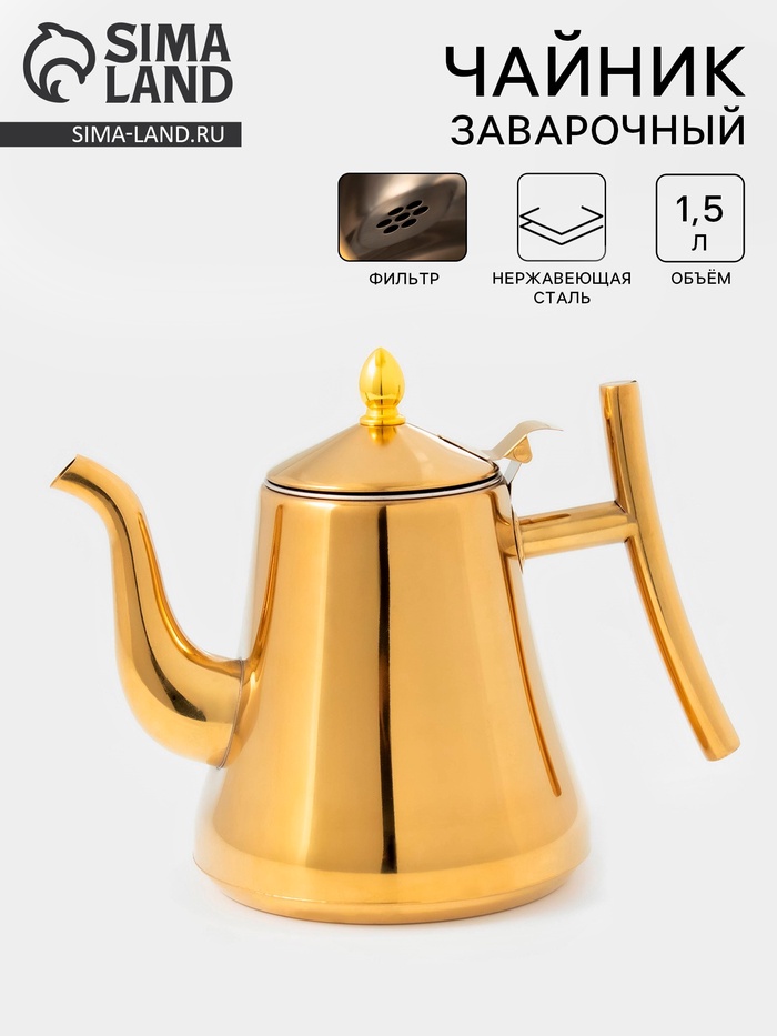 Заварочный чайник «Кеннет», 1.43 л, нержавеющая сталь, металлическое сито, золотистый