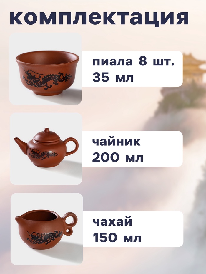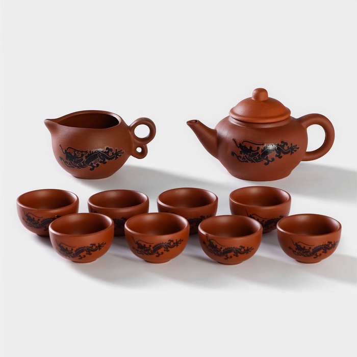 Набор для чайной церемонии «Дракон», 10 предметов: 8 пиал 35 мл, чайник 200 мл, чахай 150 мл, керамика, коричневый