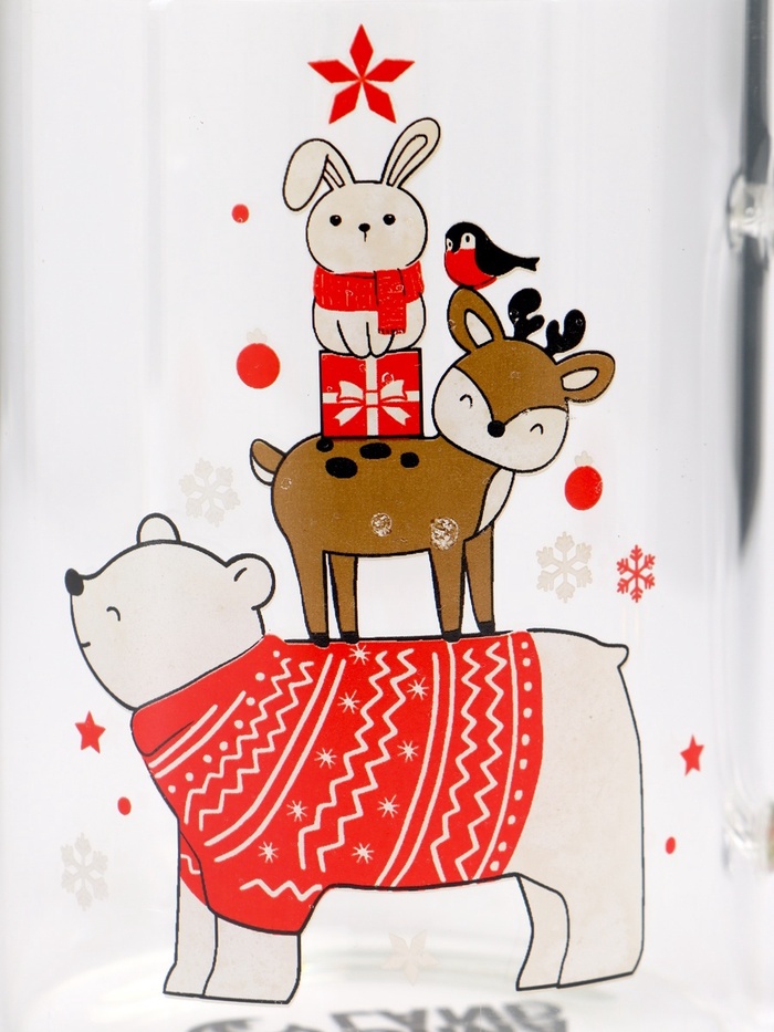 Кружка новогодняя стеклянная «Олененок», 300 мл, голография 7 фото