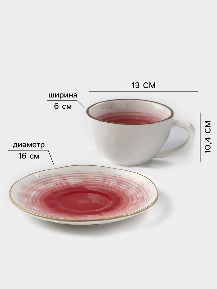Чайная пара керамическая с ложкой «Силуэт», 2 предмета: кружка 260 мл, тарелка d=19.6 см, рисунок МИКС 9 фото