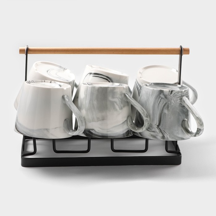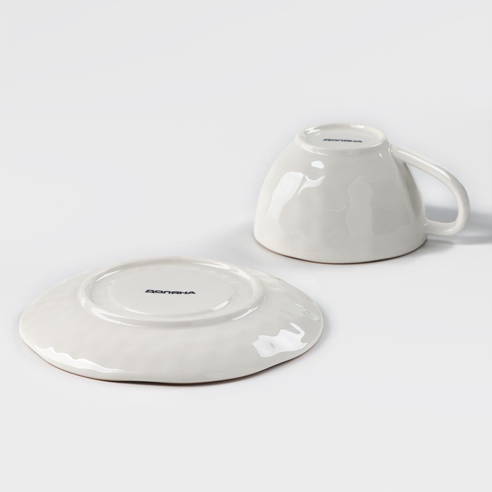 Чайная пара керамическая с ложкой «Эстетика», 2 предмета: кружка 200 мл, подставка 24.5×12.5 см, белая 3 фото