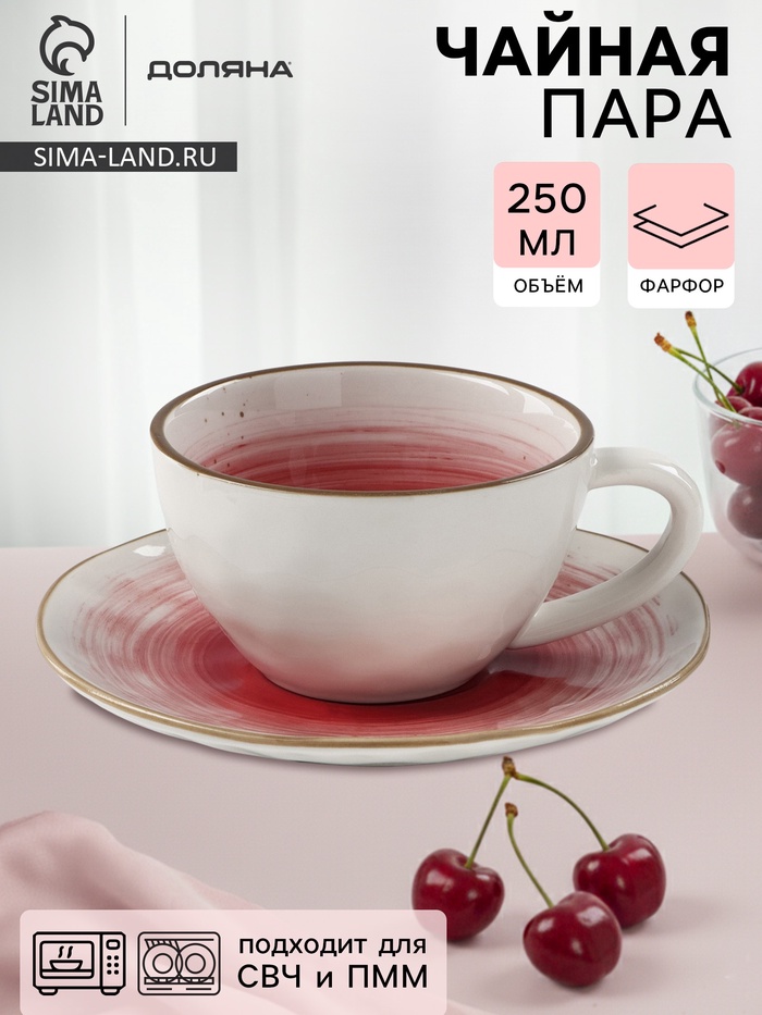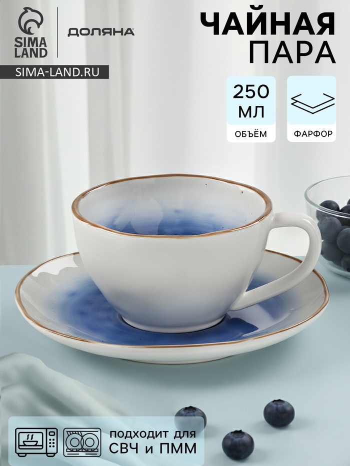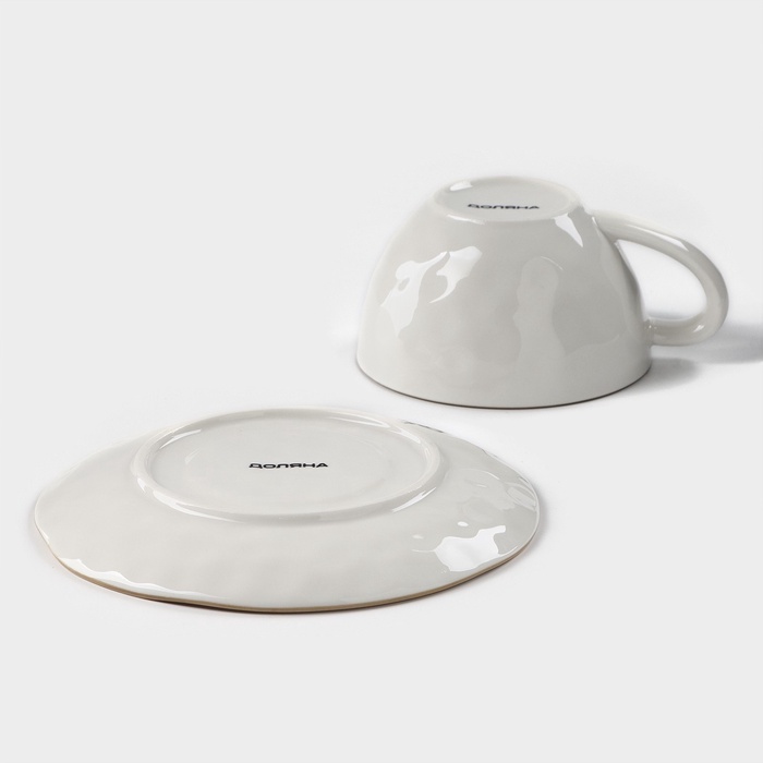Чайная пара Доляна «Лаванда», 2 предмета: чашка 220 мл, блюдце d=14.1 см, фарфор, белая 8 фото