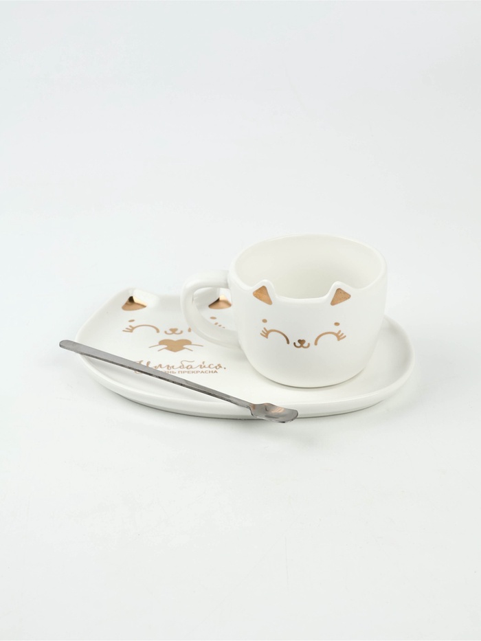 Чайная пара «Улыбайся»: кружка 200 мл, блюдце 18×11 см, ложка 10 фото