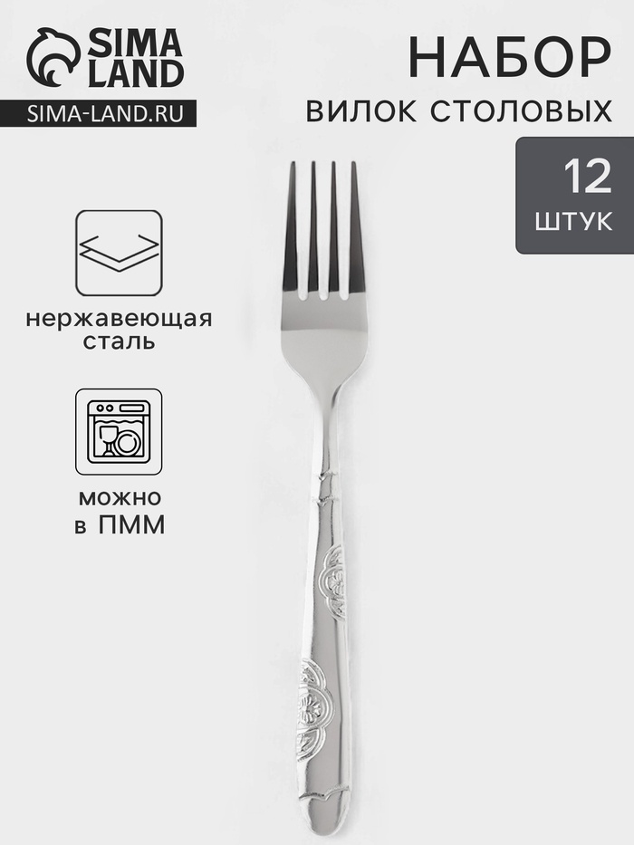 Набор вилок столовых Доляна «Русиано», h=19 см, 12 шт., нержавеющая сталь, серебристый 7 фото
