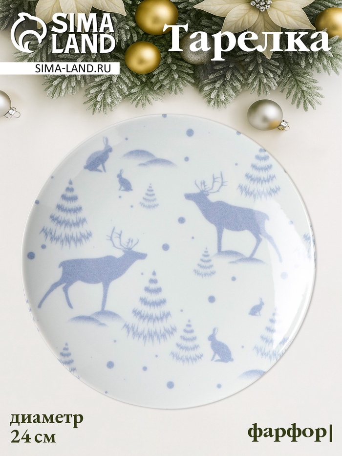 Тарелка новогодняя Добрушский завод «Зимний лес», d=24 см, фарфор, синяя 5 фото