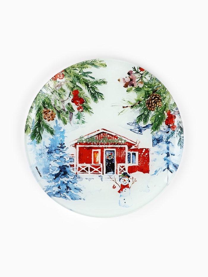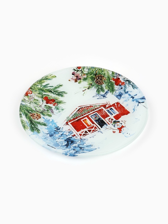 Тарелка плоская стеклянная «Новогодняя акварель», d=20 см 6 фото
