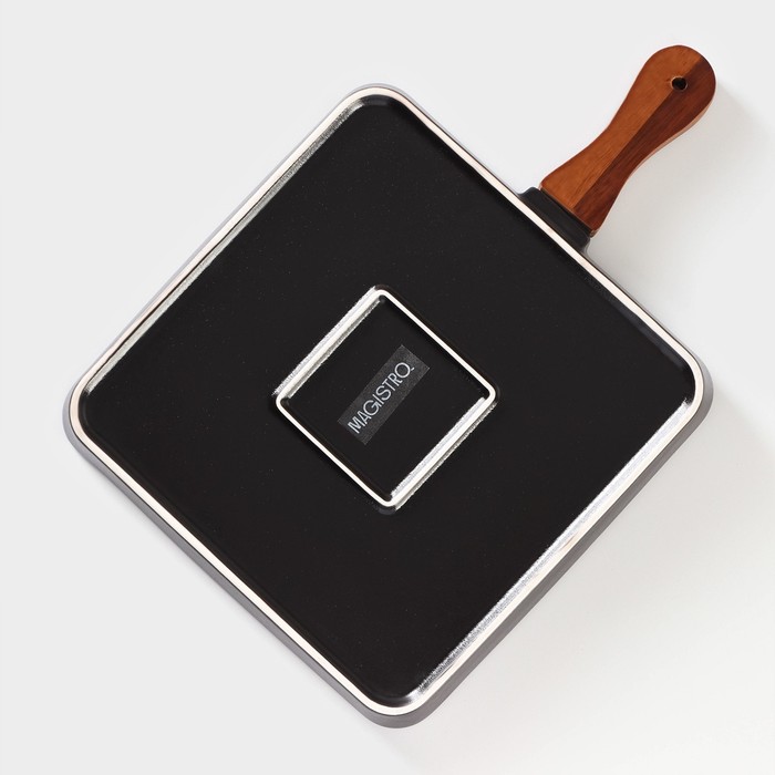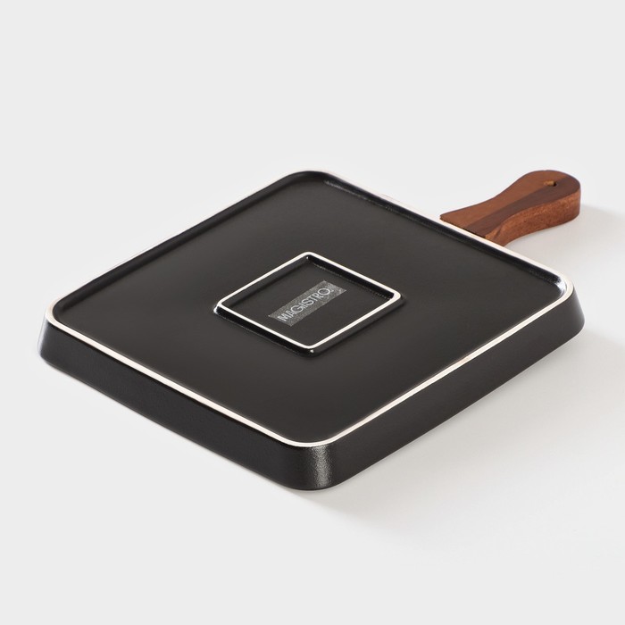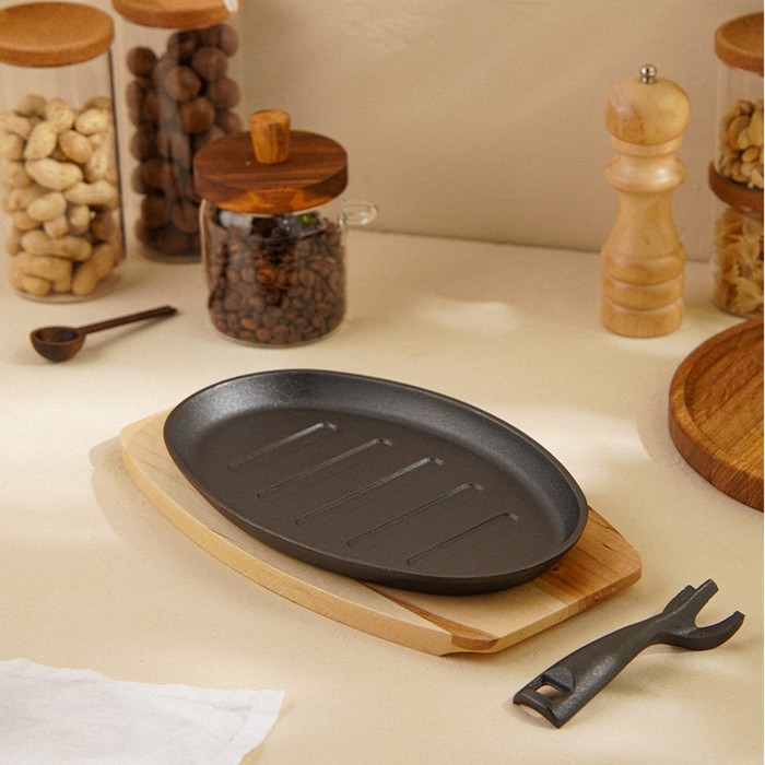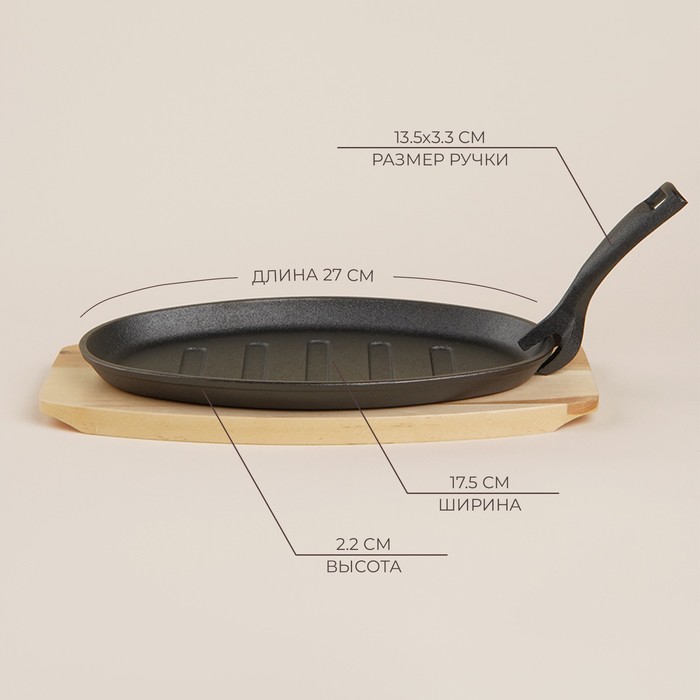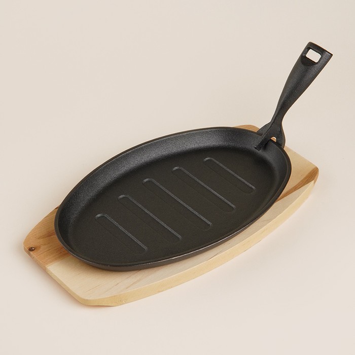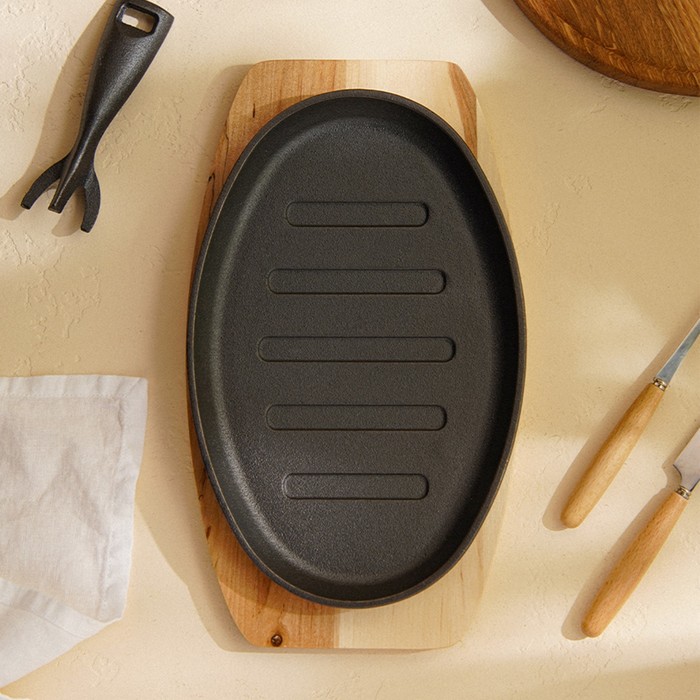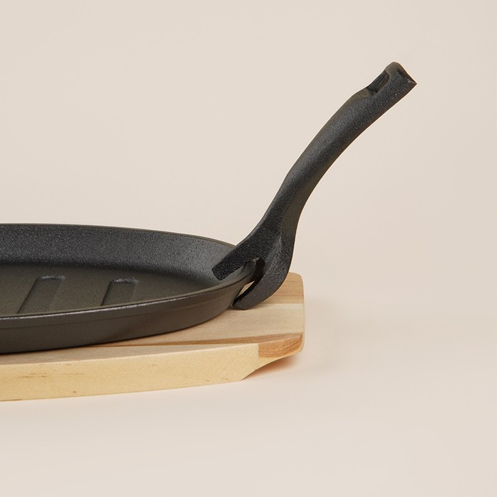 Сковорода чугунная на деревянной подставке SL Home, 27×17.5 см, h=2.2 см, индукция, чёрная 8 фото