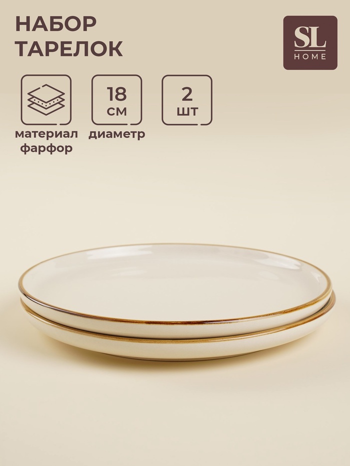 Тарелки SL Home «Леггеро», d=18 см, набор 2 шт., фарфор, бежевые 6 фото