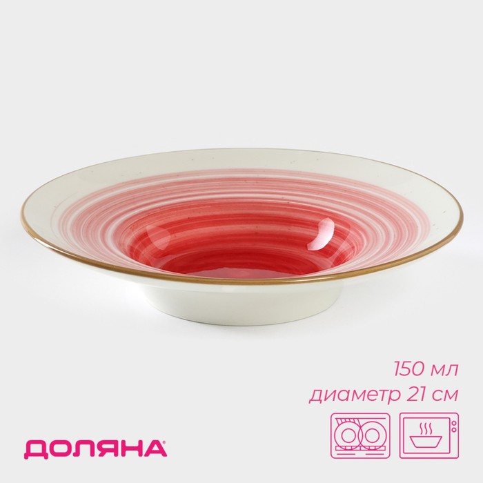 Тарелка фарфоровая для пасты Доляна «Космос», 150 мл, d=21 см, цвет красный 5 фото
