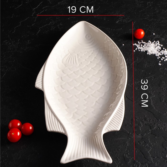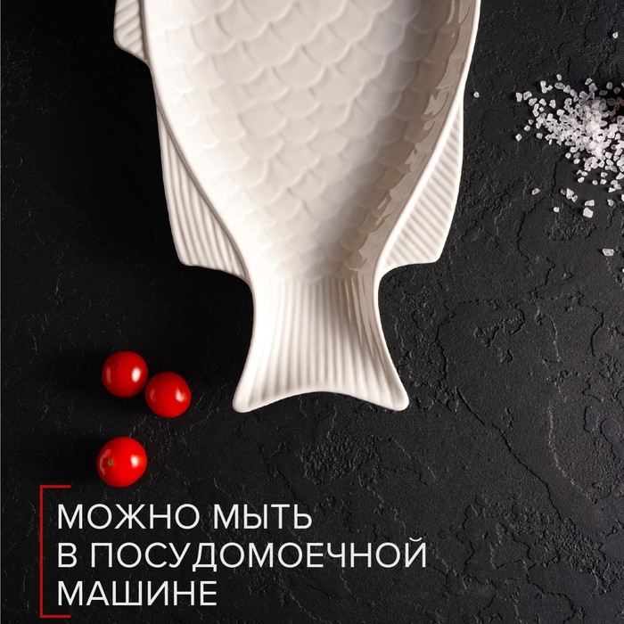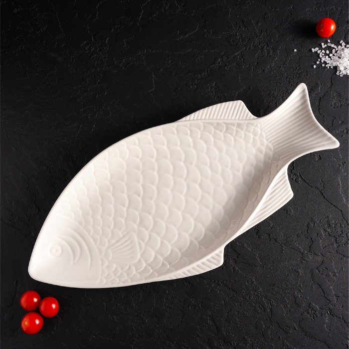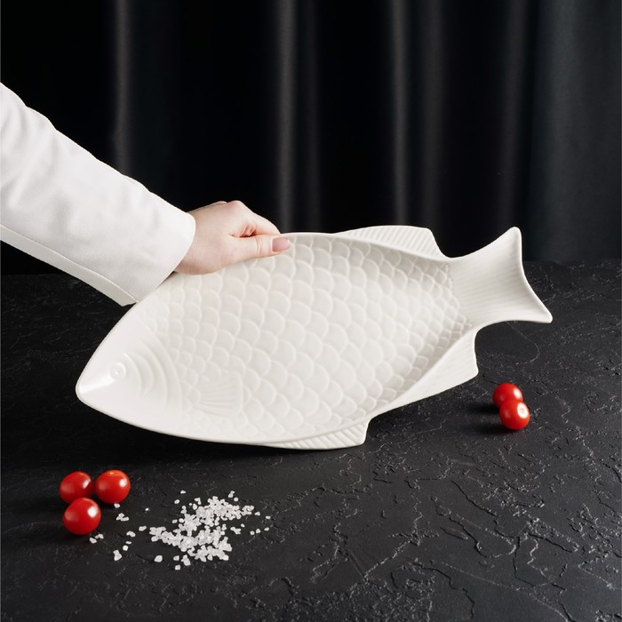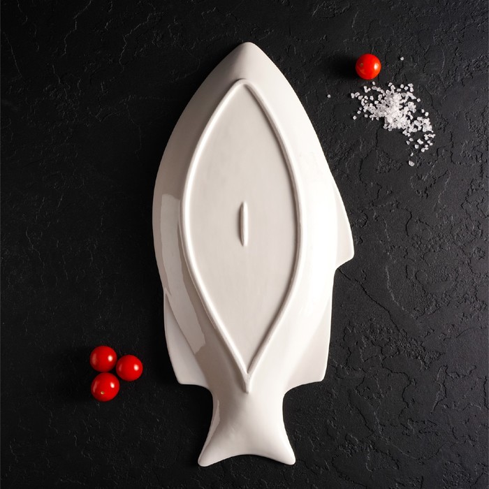Блюдо Magistro «Рыбка», 35×16.5×3 см, фарфор, белое