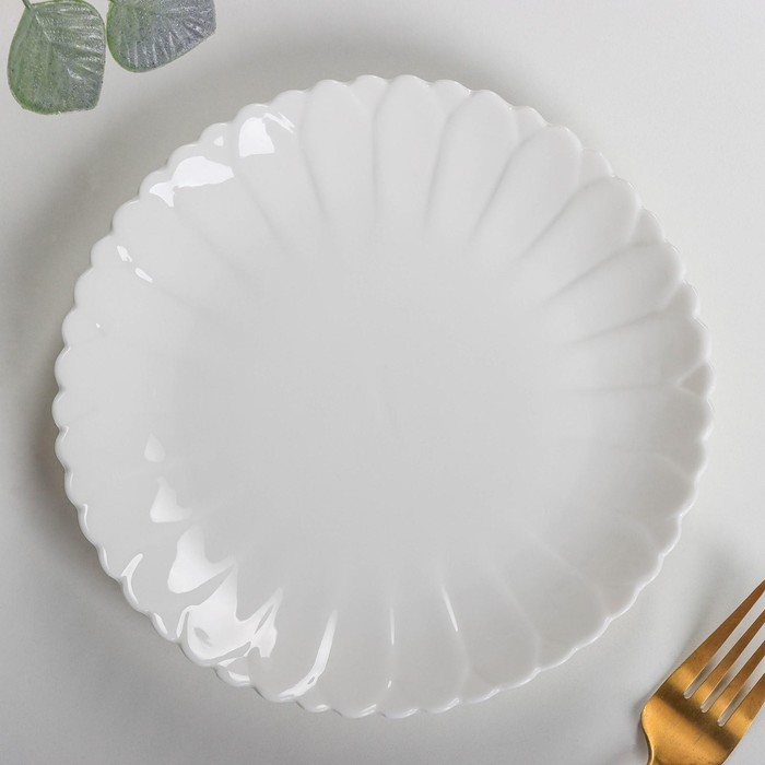 Десертная тарелка Avvir «Лист папоротника», d=21.5 см, стеклокерамика, белая