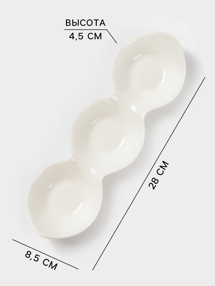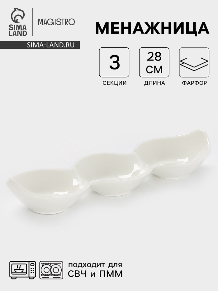 Менажница Magistro «Бланш», 3 ячейки, 28×8.5×4.5 см, фарфор, белая