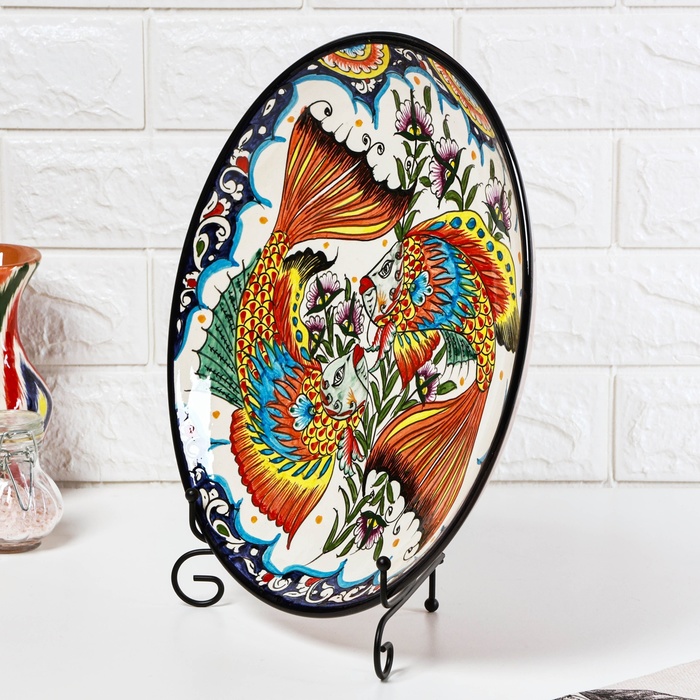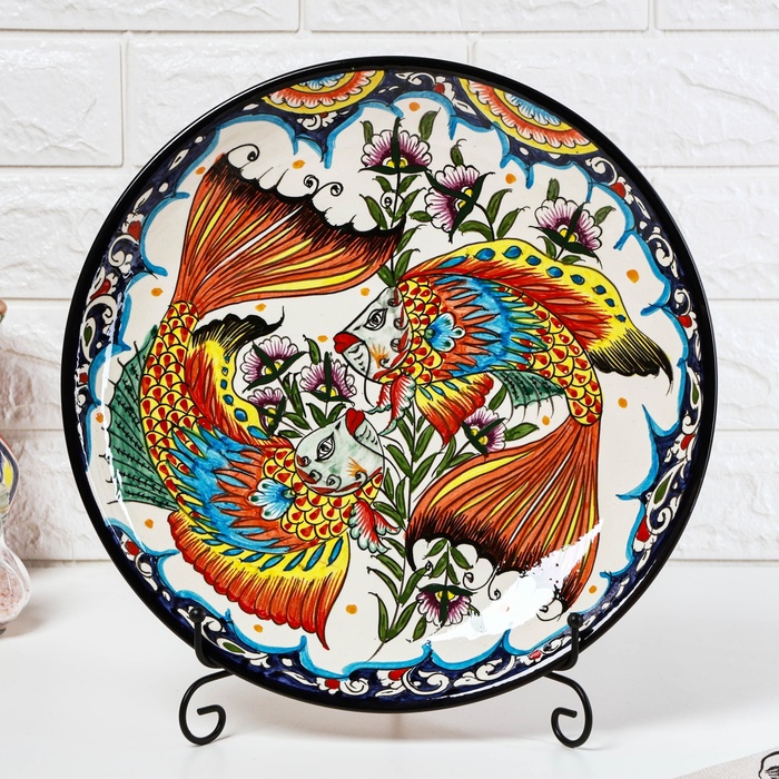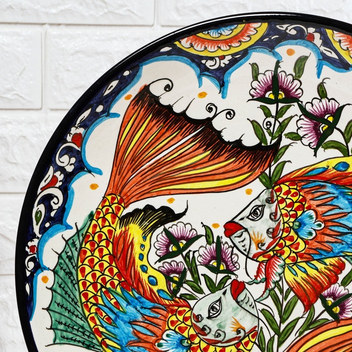 Ляган узбекский Риштанская Керамика «Рыбка», d=32 см, разноцветный
