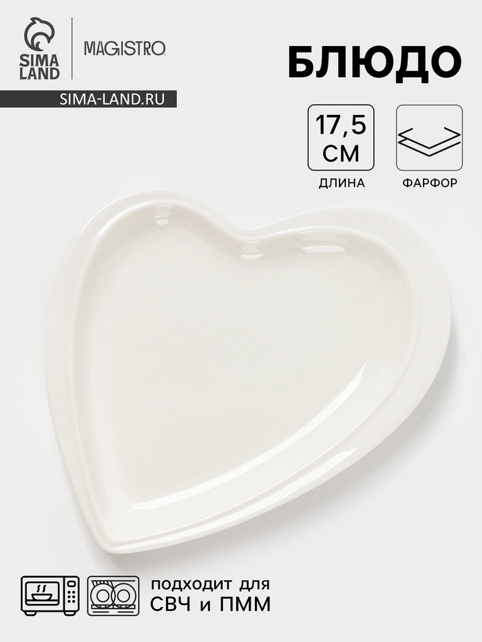 Блюдо Magistro «Сердце Бланш», 17.5×20×3 см, фарфор, белое