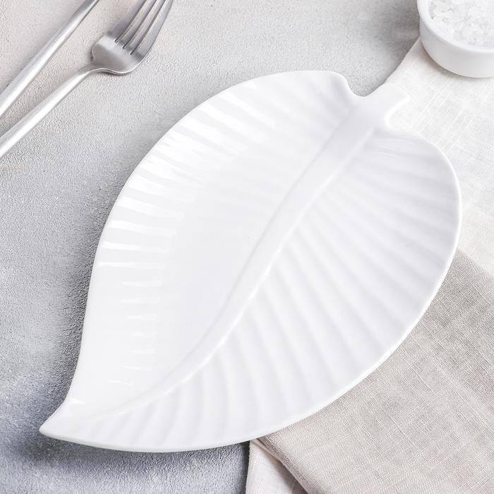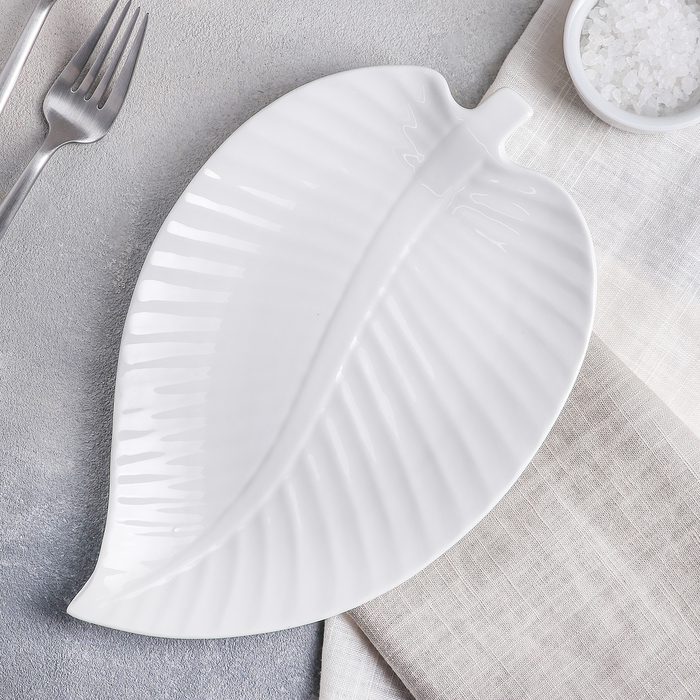 Блюдо Magistro «Лист Бланш», 31×22×3.5 см, фарфор, белое