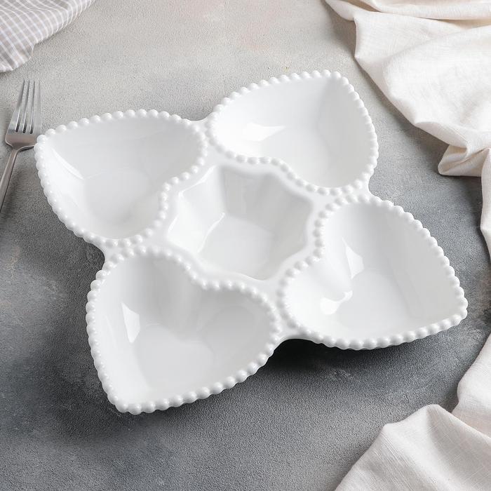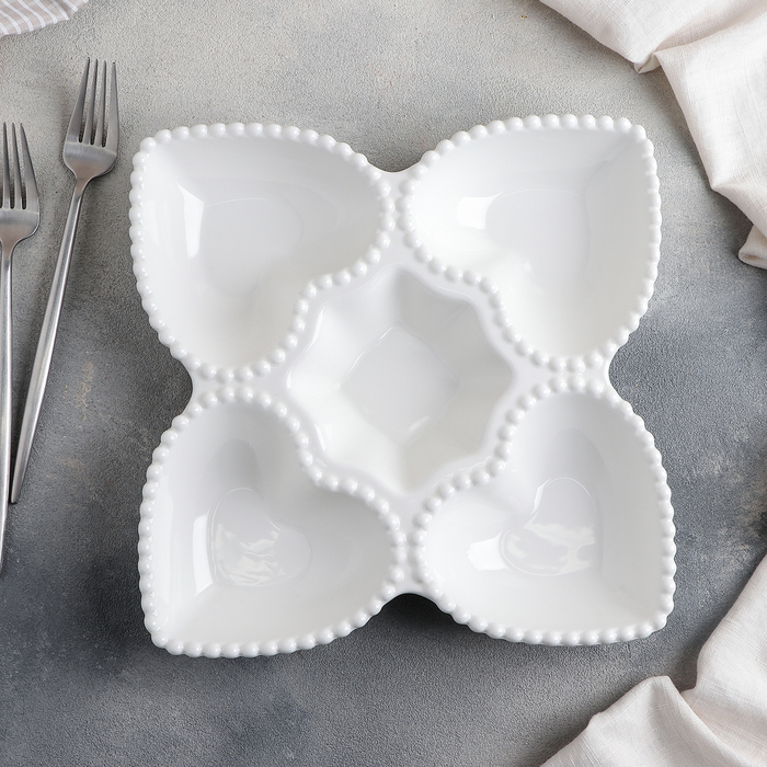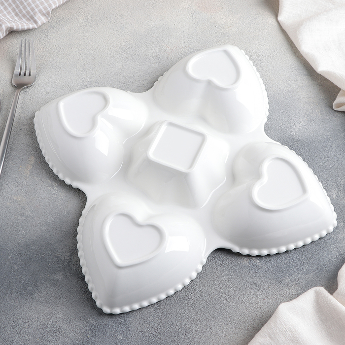 Менажница «Сердца», 5 секций, 25×5 см, керамика, белая 3 фото
