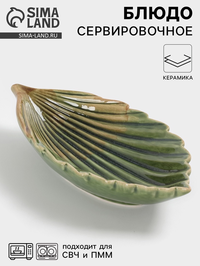 Блюдо для подачи Доляна «Зелёный сад», 25×18.5 см, фарфор, белое 7 фото