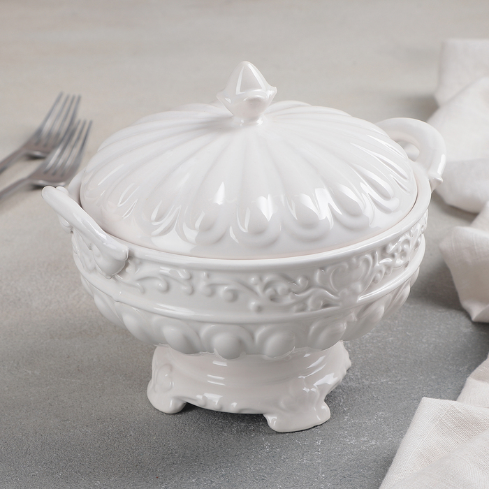 Блюдо с крышкой клош «Винтаж», 19.3×16.5×17 см, керамика, белое 4 фото