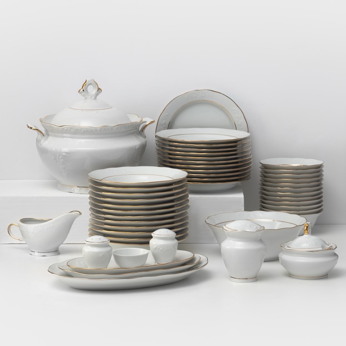 Сервиз столовый Добрушский завод «Бельё», 48 предметов, фарфор, белый 10 фото