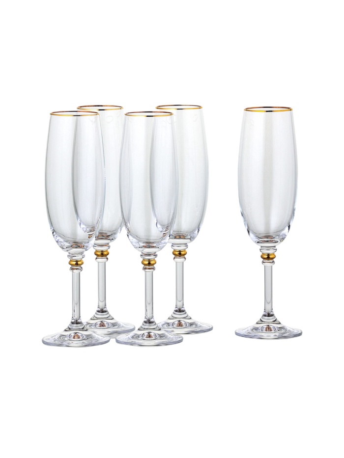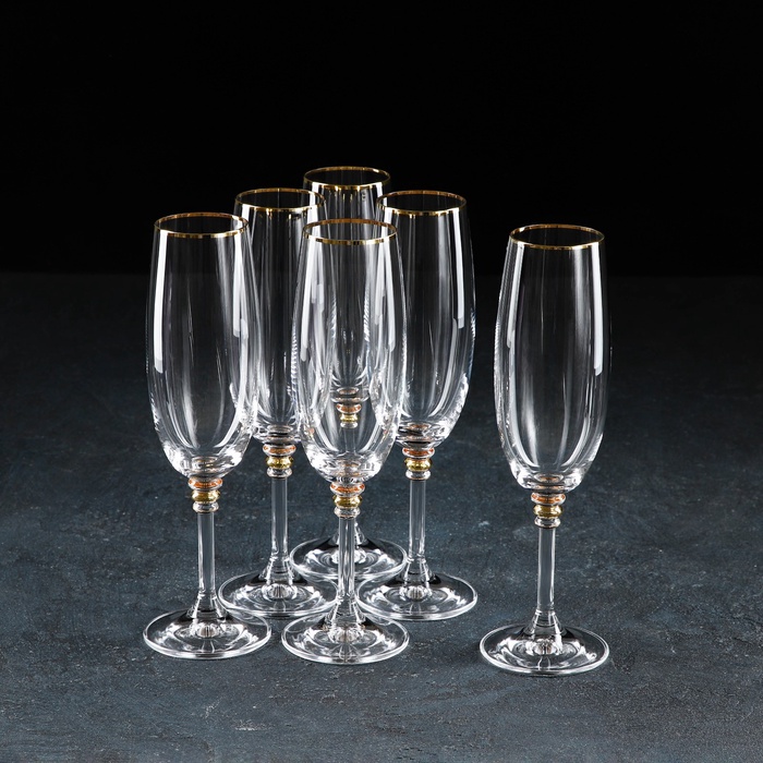 Набор бокалов для шампанского «Роскошь», с золотой отводкой, 6 шт., стекло, прозрачный 6 фото