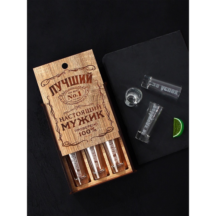 УЦЕНКА Набор стопок в деревянном ящике «Лучший мужик» 6 шт. 10 фото