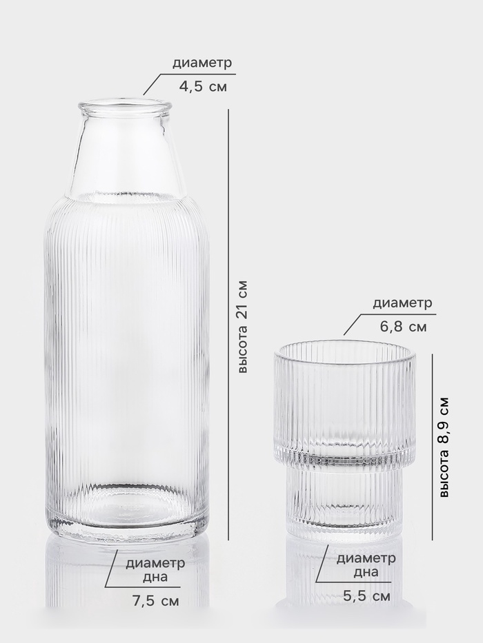 Графин «Грани»,750, со стаканом 200 мл, стекло, прозрачный 7 фото