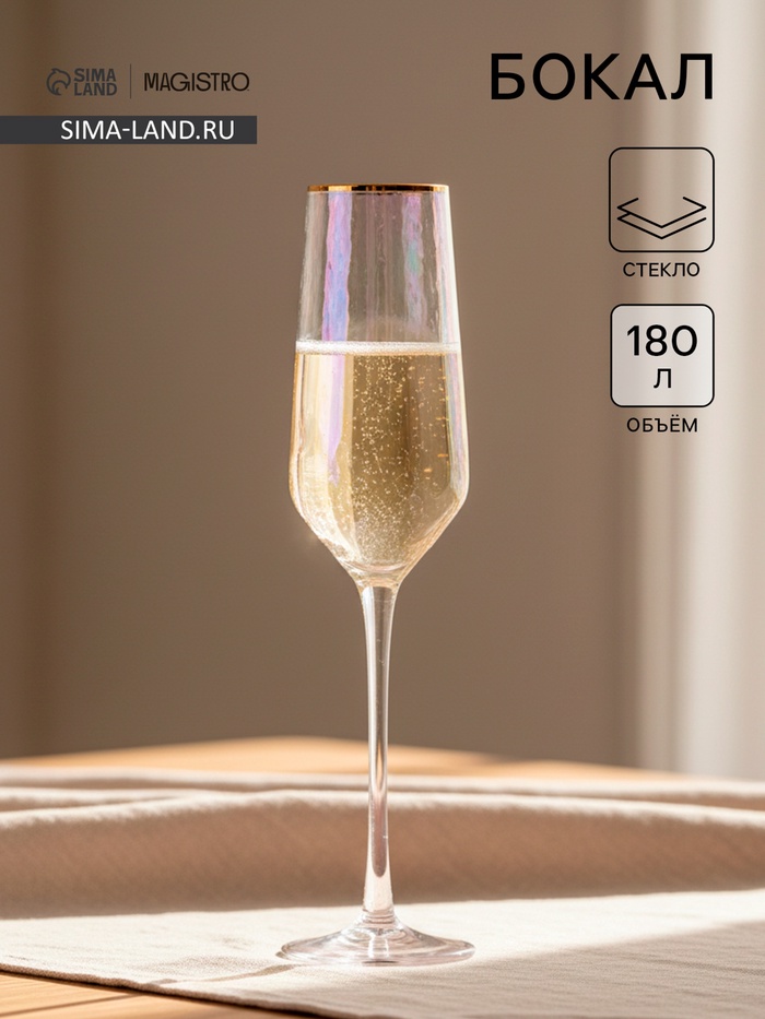 Бокал для шампанского Magistro «Дарио», 180 мл, 5×27.5 см, стекло, перламутровый 7 фото