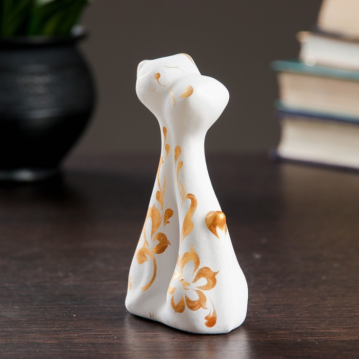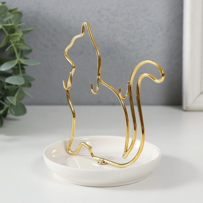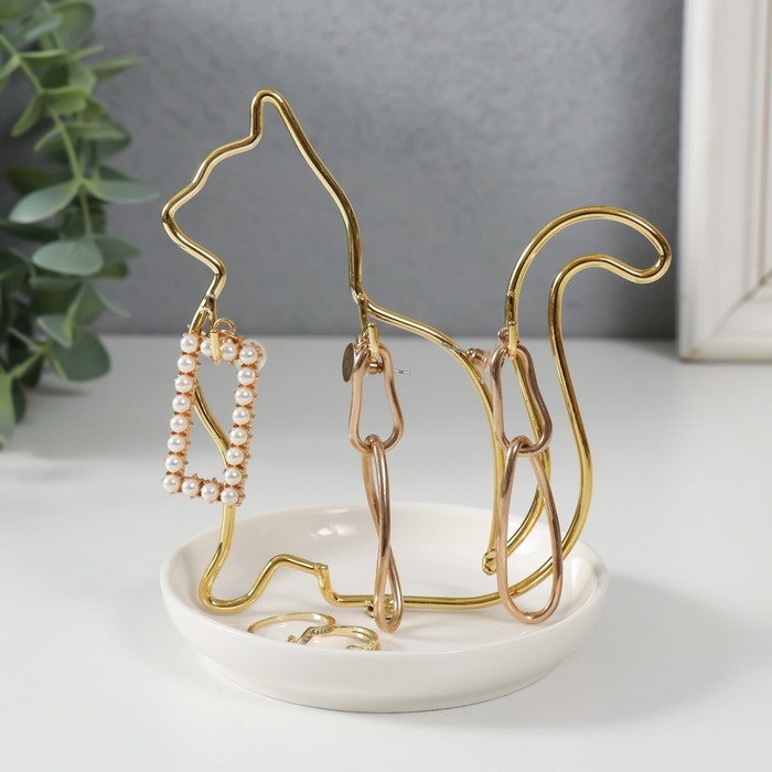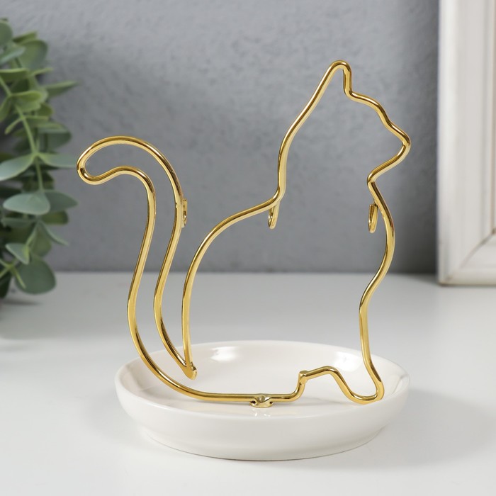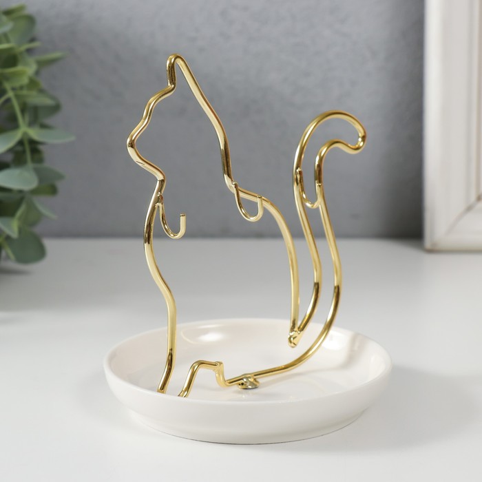 Подставка для мелочей «Кошка», керамика, металл, белая с золотом, 10.5×10×12.5 см 5 фото