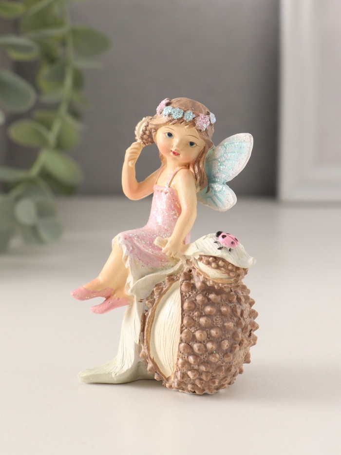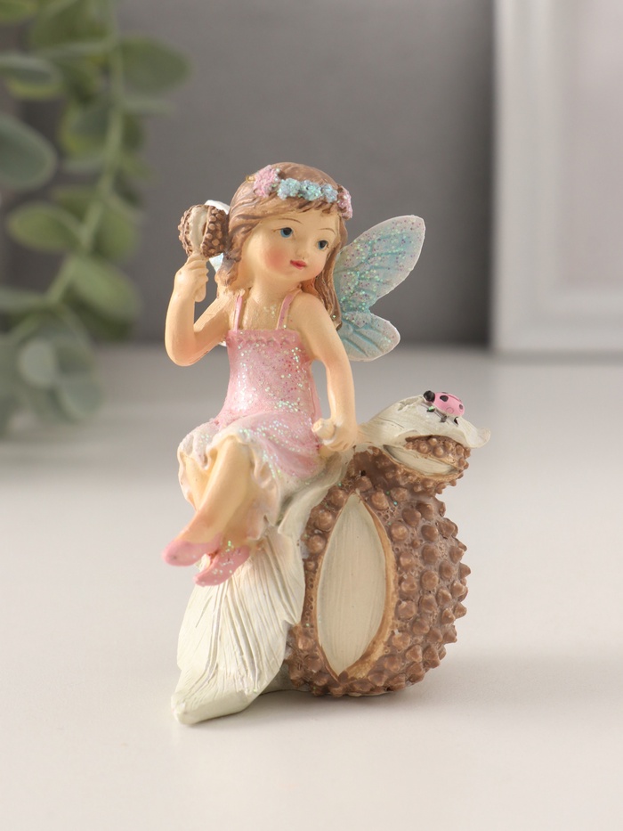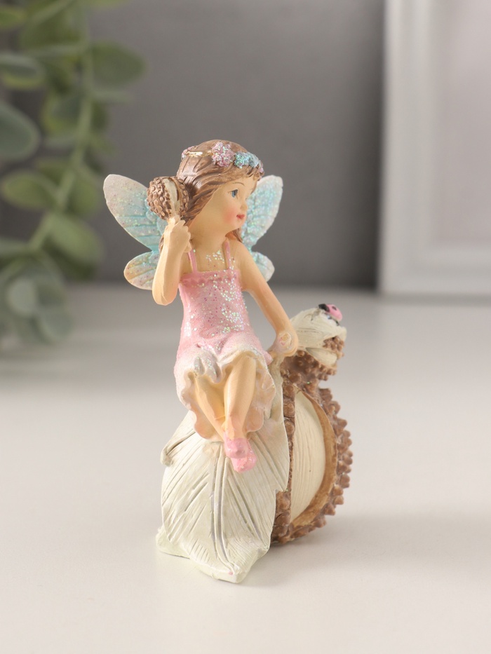 Фигурка полистоун «Девочка-фея в розовом платье на фрукте с божьей коровкой», 6.5×5×9 см 4 фото