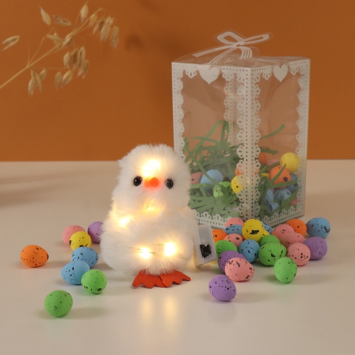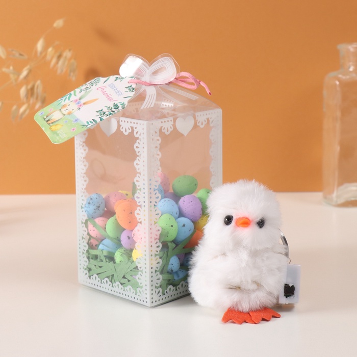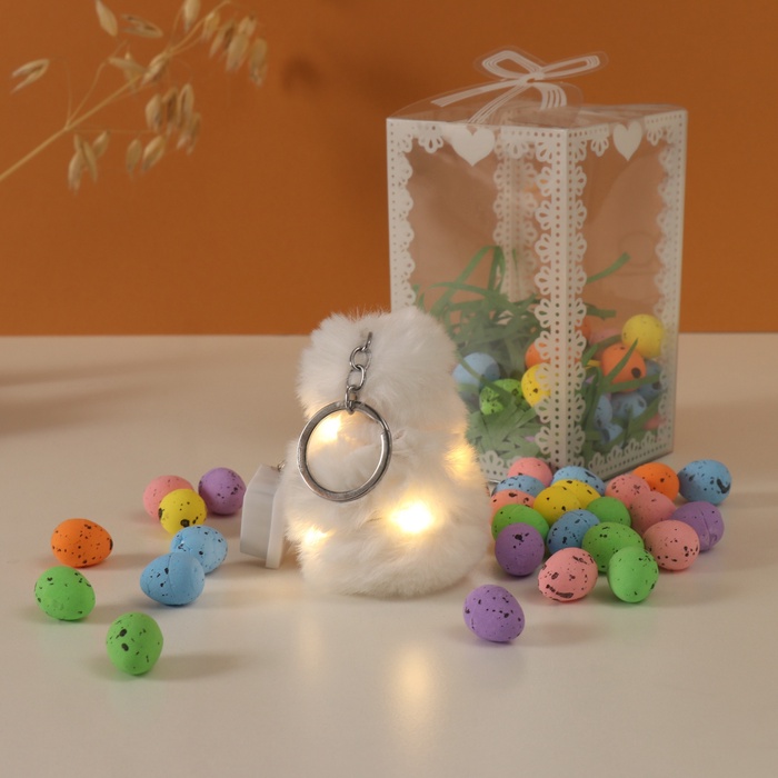 Набор подарочный «Цыплёнок белый: брелок для ключей на кольце», фигурка светящаяся, яички 50 г, роса 7×7×12 см 6 фото